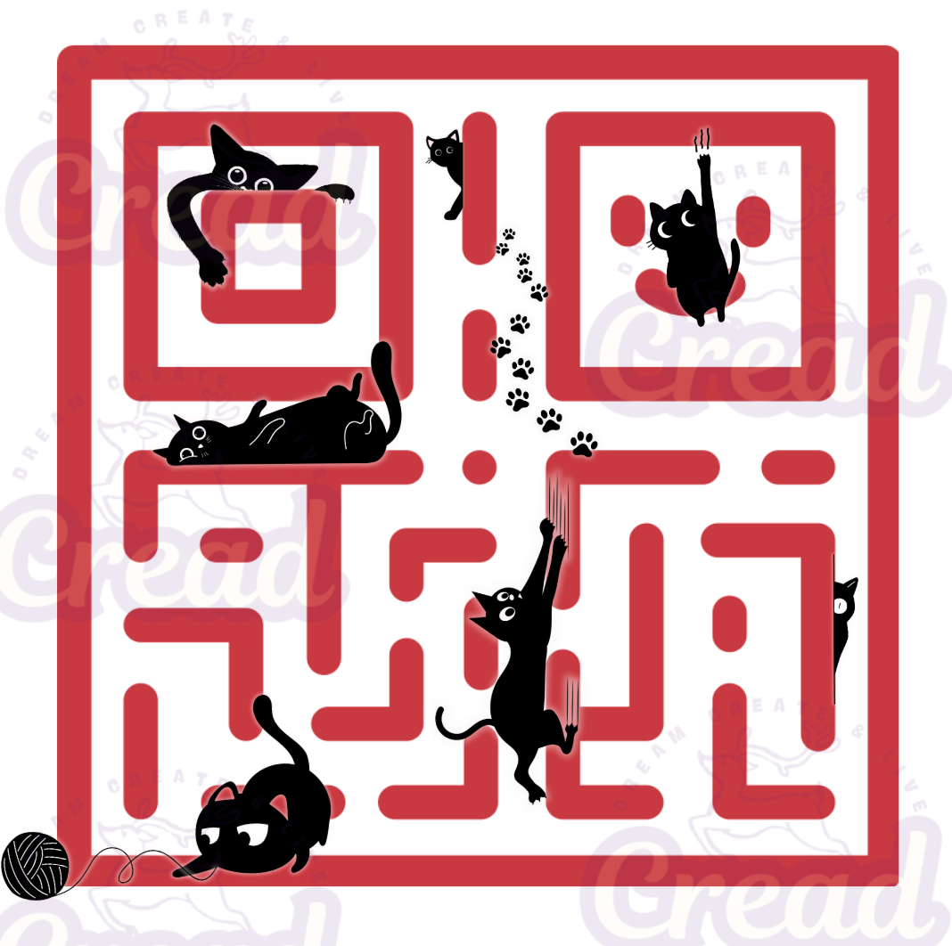 About my Design: This design reimagines a QR code as a playful maze explored by curious black cats. The concept symbolizes how even the most structured digital patterns become lively and unpredictable in the eyes of a cat. It’s a modern, fun, and clever visual created to bring personality and movement to Creadland’s collection.